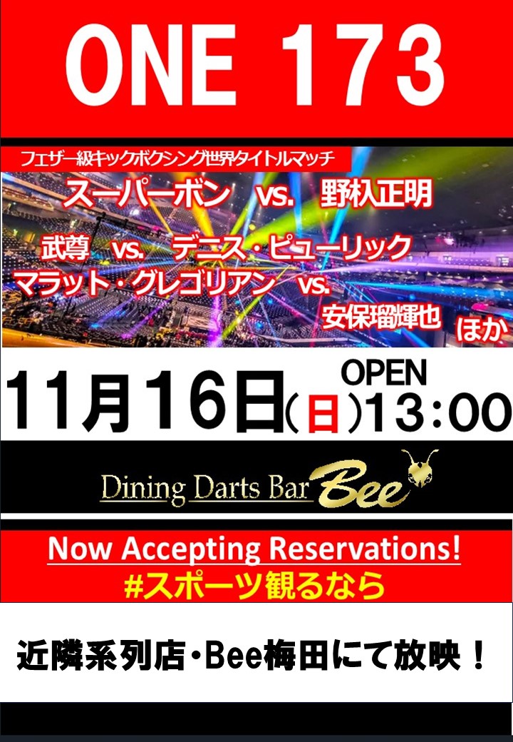※こちらの試合は、近隣店舗のBee梅田店にて放映いたします!