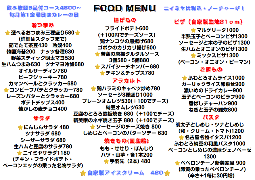 | 店名 | スポーツ観戦居酒屋「遊食酒場 新美家」 |Niimiya |