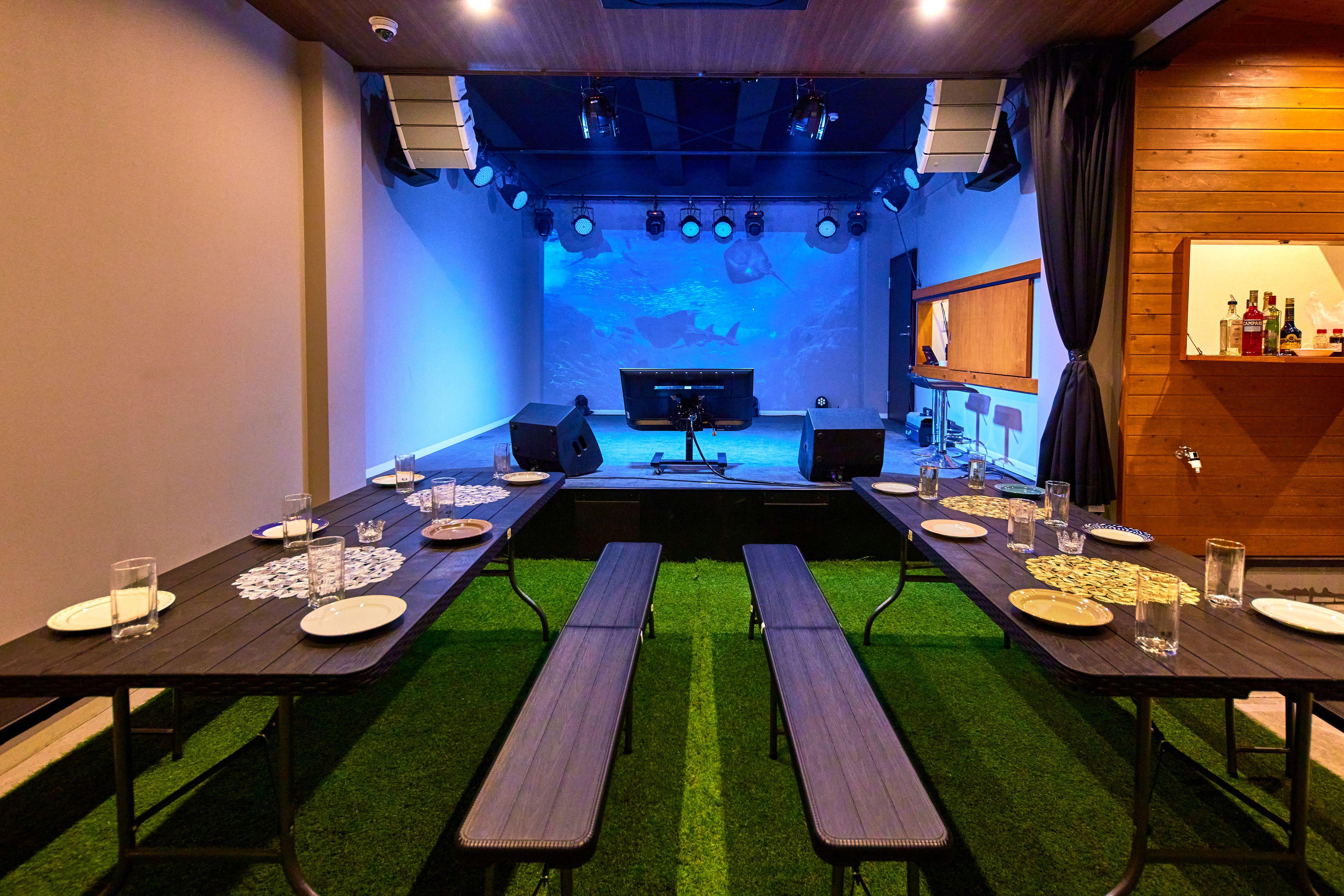 【自由なスタイルで盛り上がる観戦環境】 基本は完全予約制のプライベート空間ですが、大型スポーツイベント開催時は一般開放も実施。フード持込・デリバリーも自由で、お好みのグルメと一緒に観戦を楽しめます。屋上BBQセット(限定2組)なら、星空の下でバーベキューを楽しみながらスポーツ観戦という贅沢な時間も。シーンに合わせた多様な使い方ができる、心斎橋唯一の屋上スポーツスポットです。