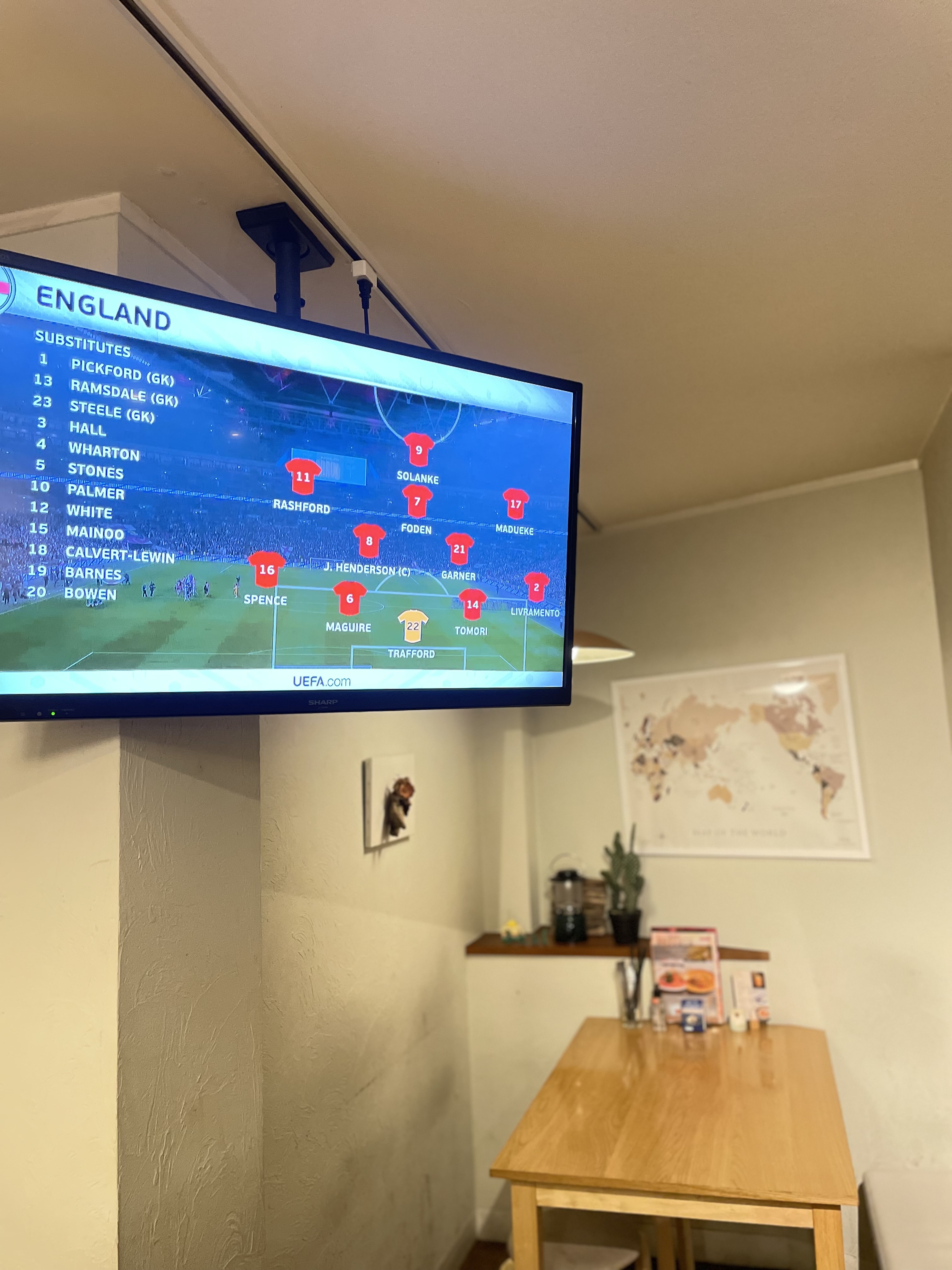The store is equipped with a large projector. They broadcast live high-profile matches including Japan national soccer team games, Premier League, professional baseball, WBC, Rugby World Cup, boxing, and more.